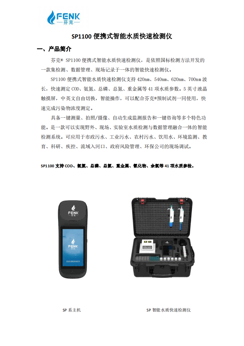 產(chǎn)品標(biāo)題:SP-1100 便攜式智能水質(zhì)快速檢測(cè)儀